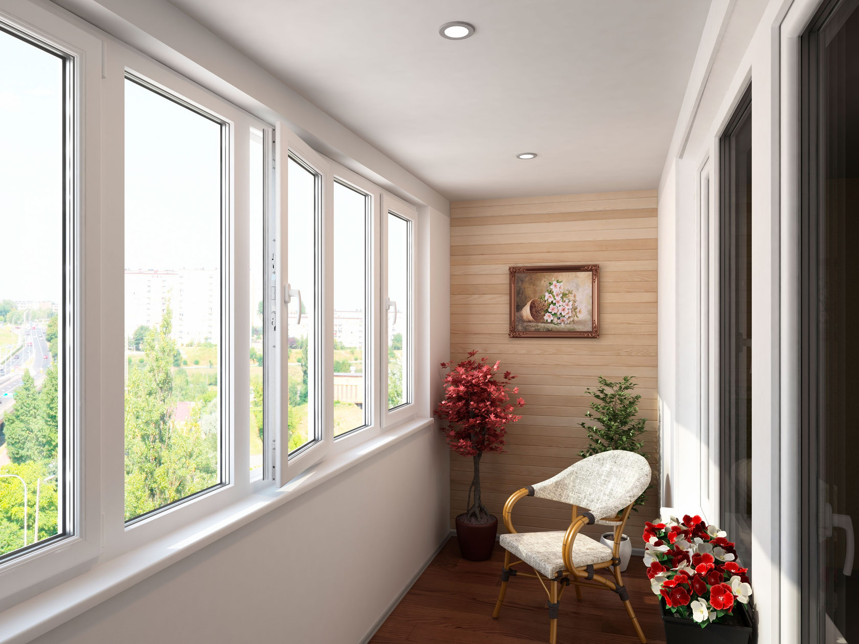 Классический выход на балкон (или балконный блок) есть практически в любой квартире. Удобное сочетание остекления и надежного металлопластика в двери подчеркнет эстетику комнаты.